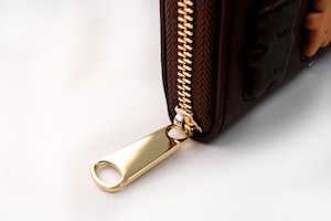 ファスナー引き手は、開け閉めしやすく高級感のある大き目の金属製です。