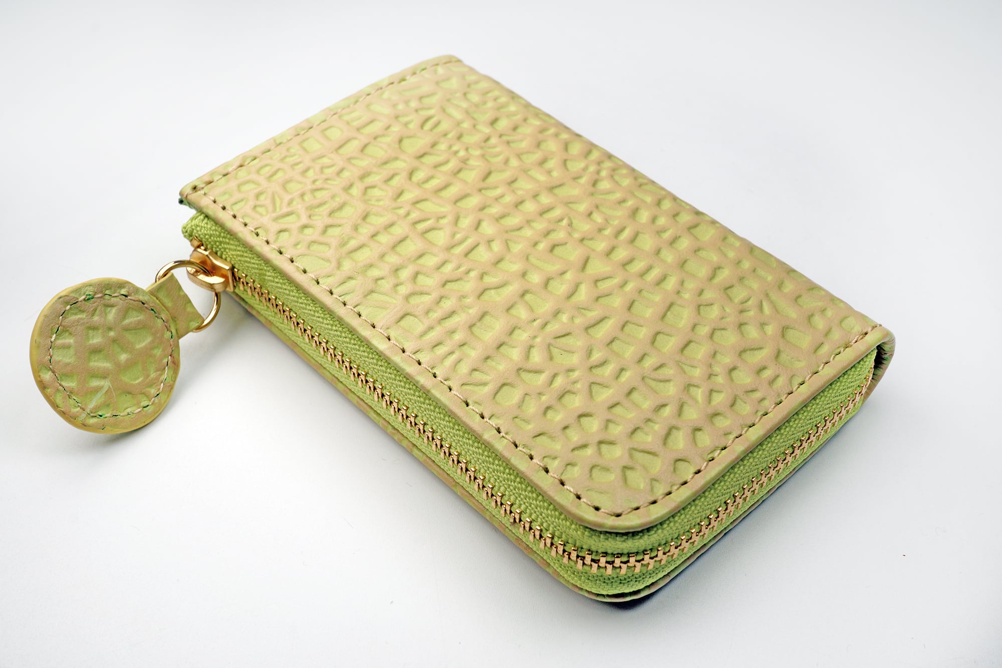 当店オリジナルのメロン革(牛革)を使用した、L字ファスナータイプの多機能キーケースです。夕張メロンに代表される赤肉メロン、クラウンメロンに代表される青肉メロンの2種類お作りしました。