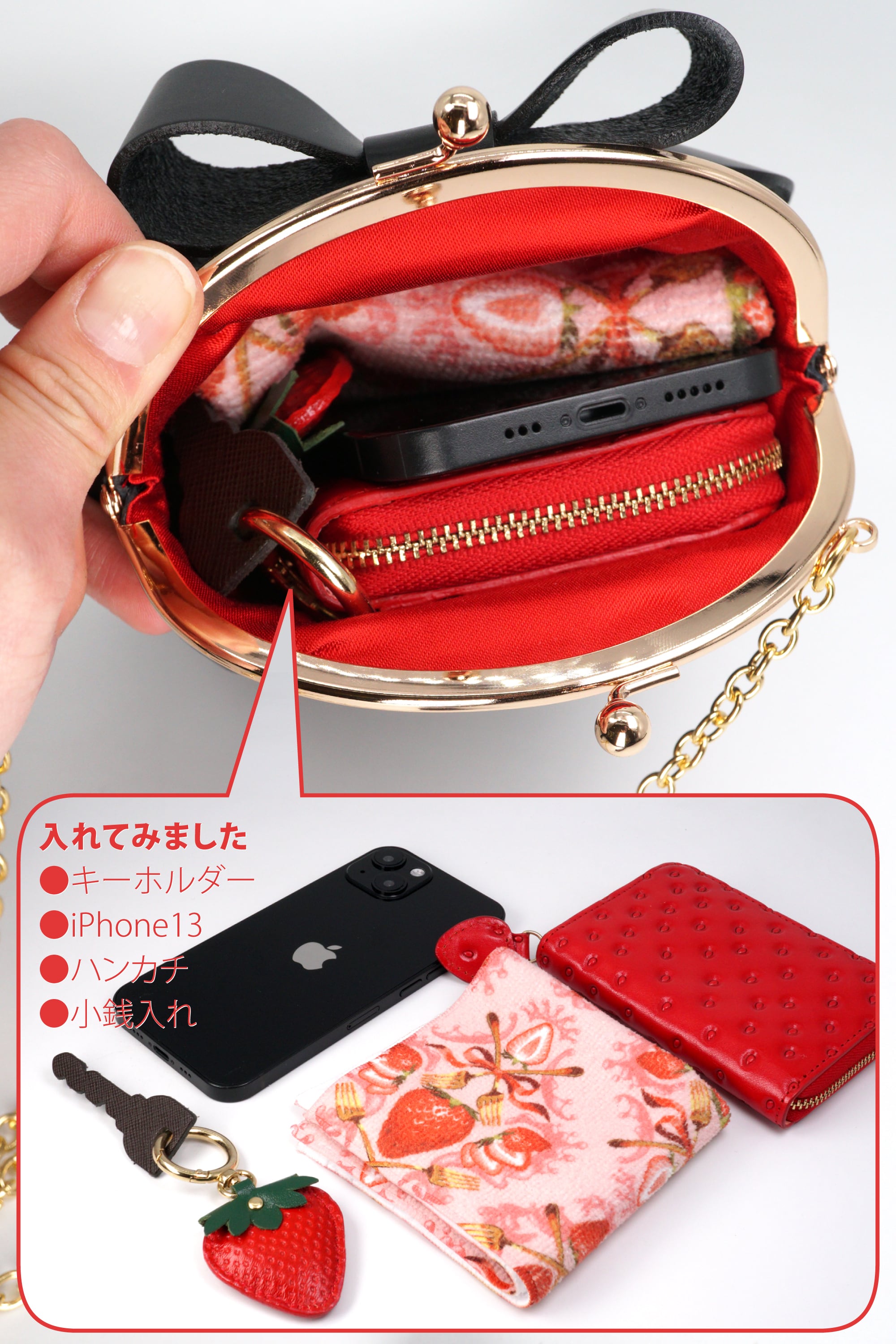 苺がま口ショルダーバッグに、スマホショルダーとして使える可愛いミニサイズが仲間入り。