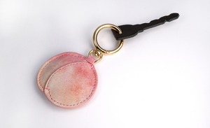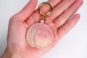 桃のような見た目と手触りが特徴の、当店オリジナル革を使用した可愛い桃型のキーホルダーです。